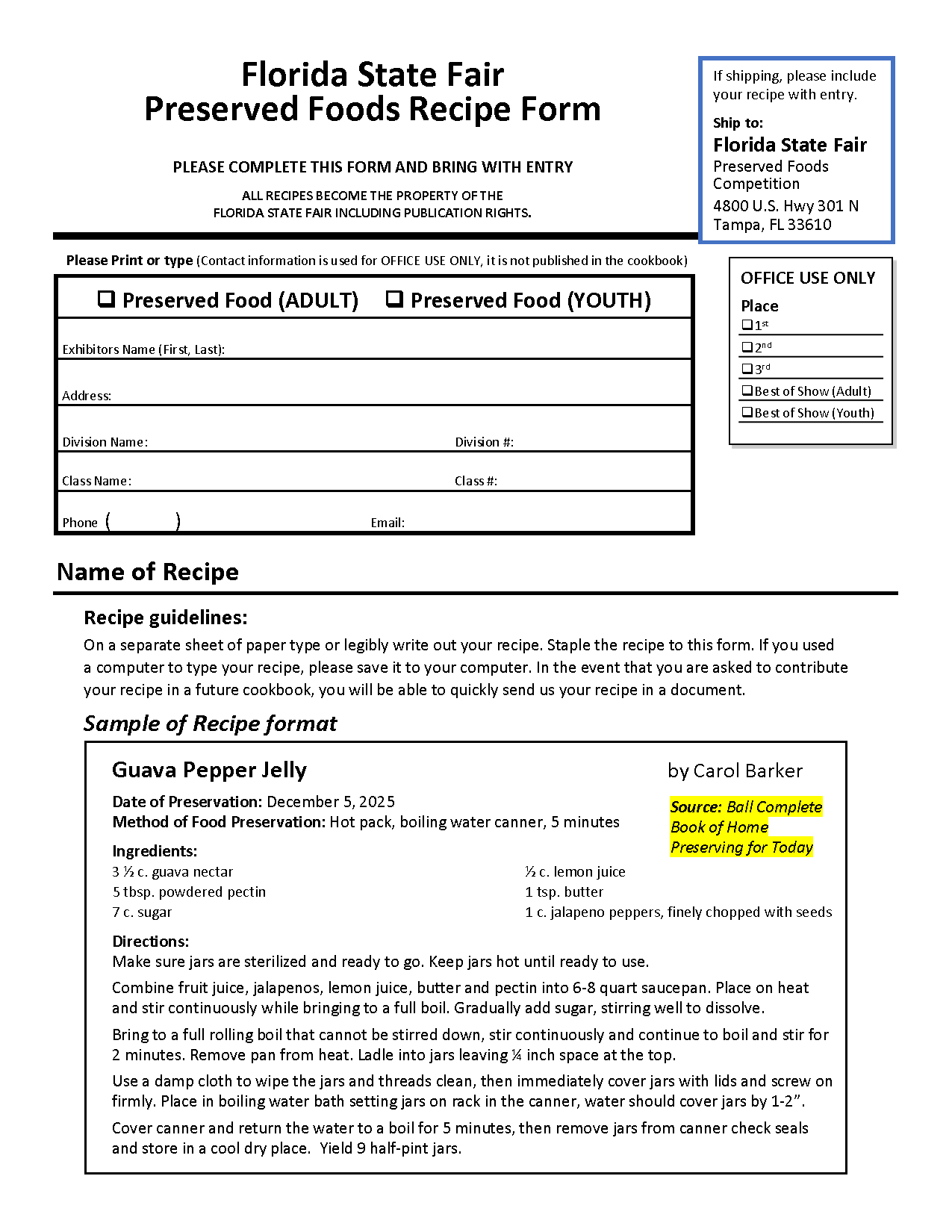 Everything you need to know to enter the 2026 Florida State Fair Baking and Canning Competitions.